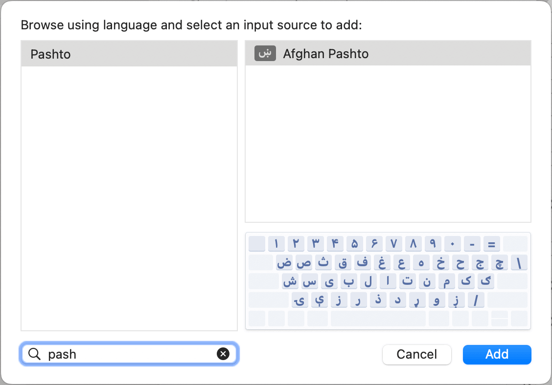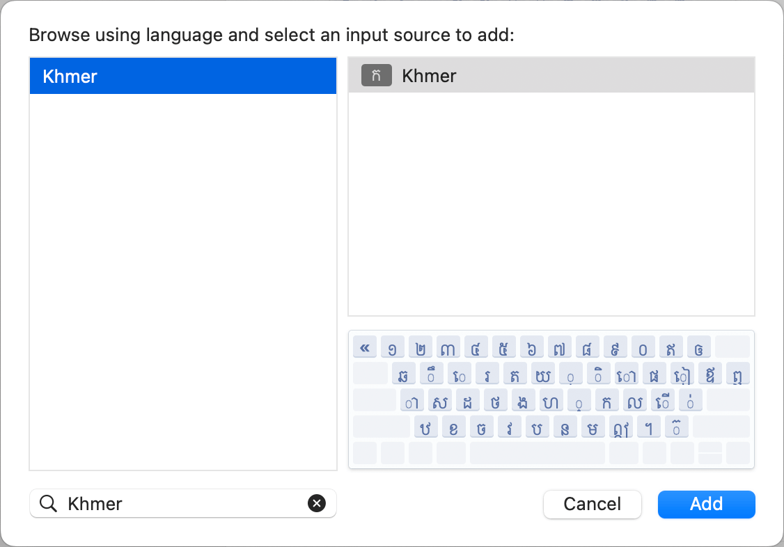 5. Choose the language and keyboard layout option. Then click the “Add” button.