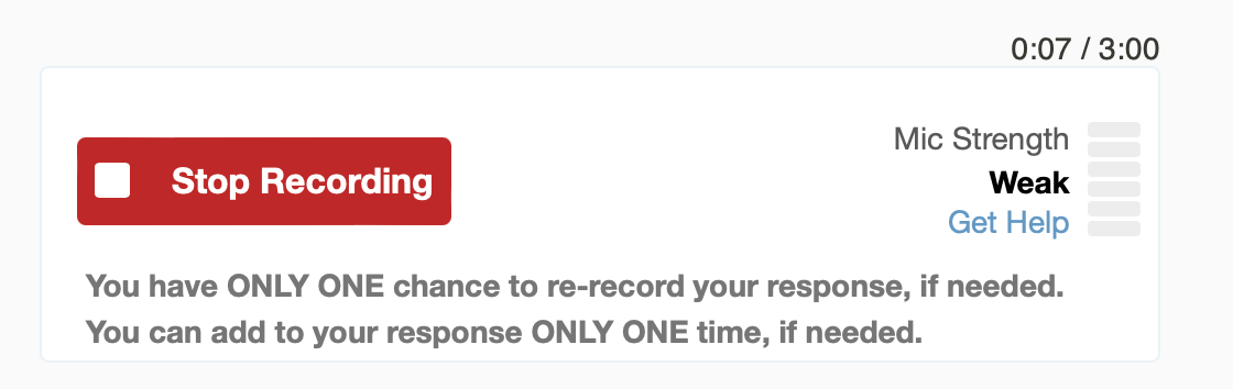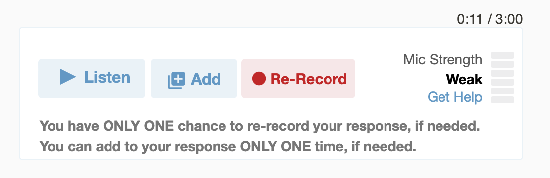 - Click Re-Record if you want to delete your response and re-record it. You have ONLY ONE chance to re-record your response, if needed.