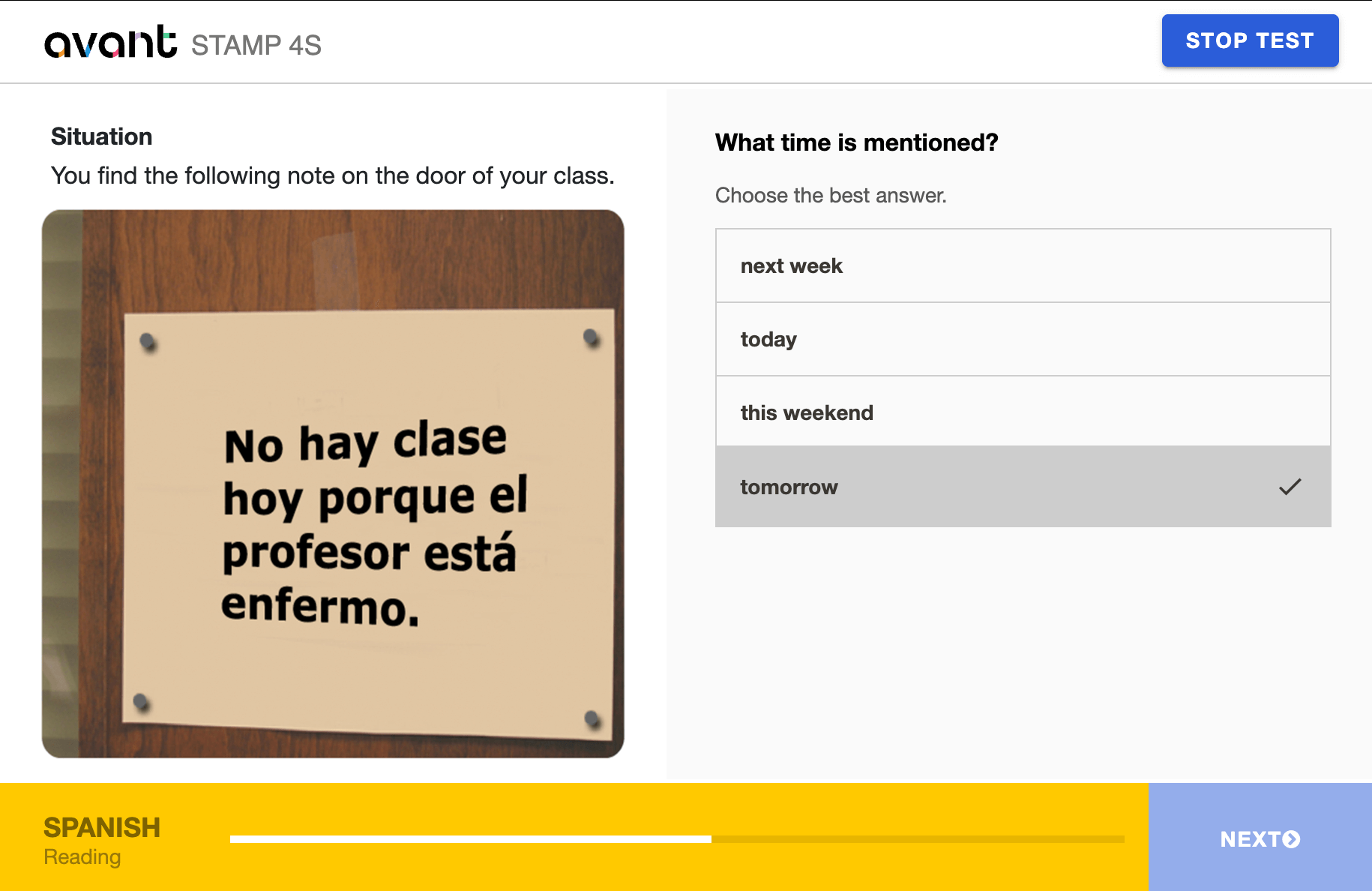 Avant STAMP (STAndards-Based Measurement of Proficiency) is an online, computer-adaptive test that measures language proficiency in Reading, Writing, Listening, and Speaking.